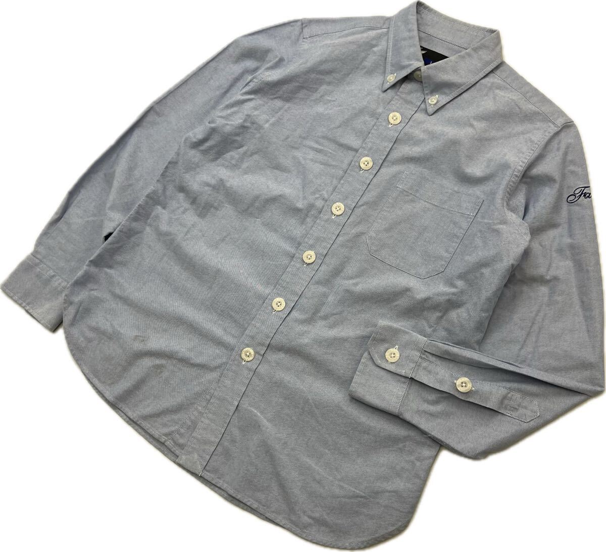 > FAT ☆ デザイン BIGボタン◎ ボタンダウン シャツ 長袖 サックスブルー S スキニー ストリート アメカジ 古着 人気 エフエーティー■FD246