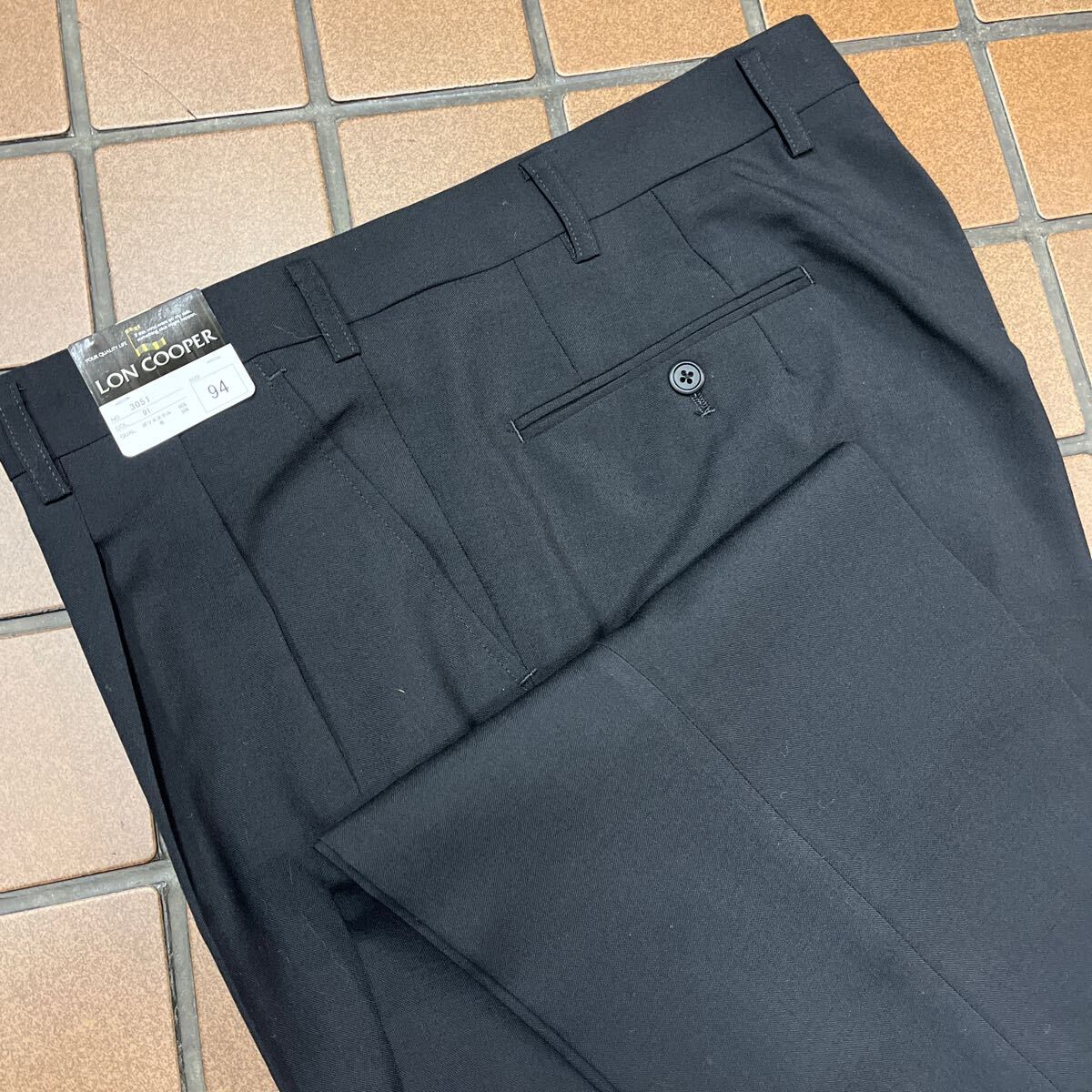 - 新品☆未使用 W94cm ブラック ゆったり系 スラックス カジュアルパンツ ゴルフウェア GOLFパンツ 2タック 薄手のサラサラ生地 ウール ポリ