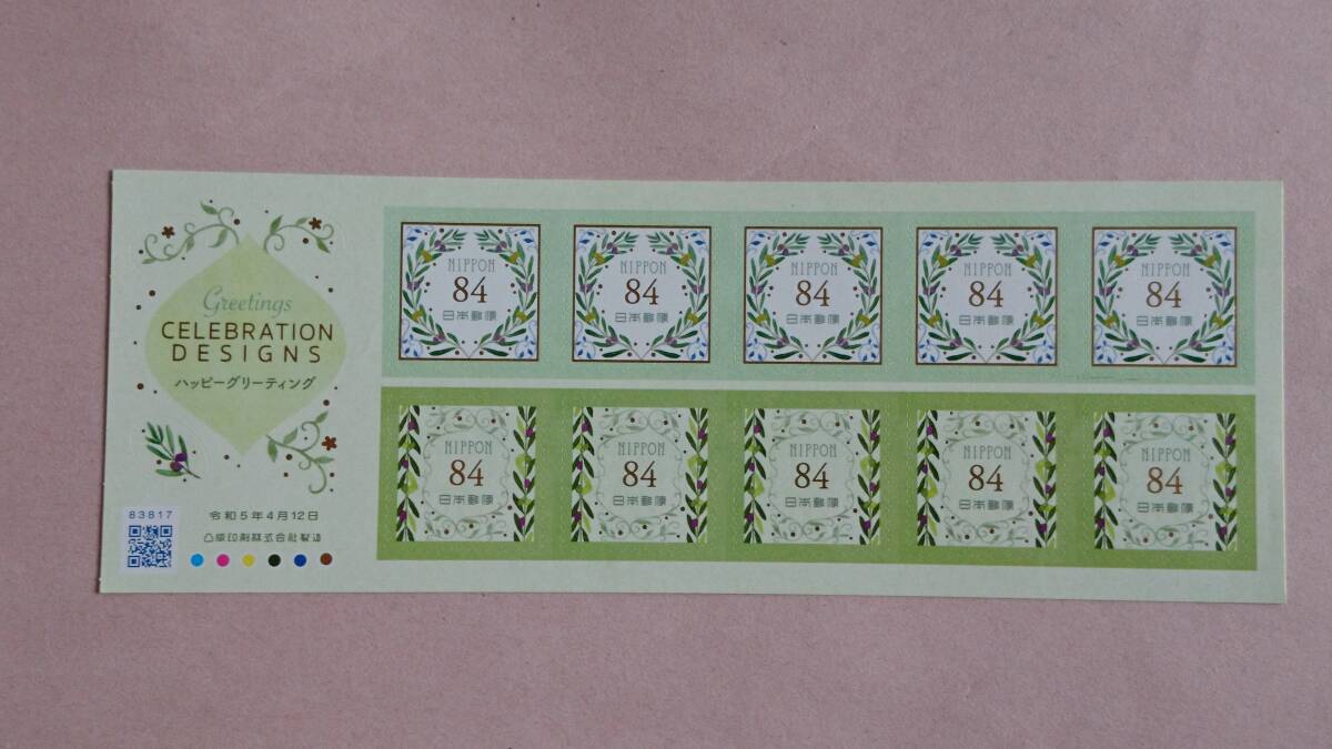 - 令和5年4月12日 シール切手シート 84円 x10 ハッピーグリーティング 840円分 Greetings CELEBRATION DESIGNS ②