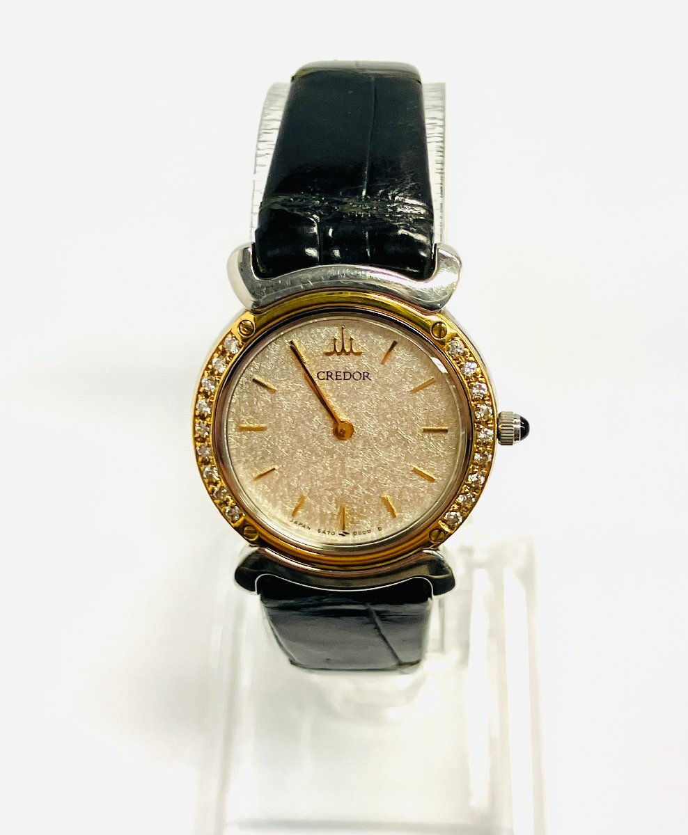 - qow.Z2X05 CREDOR HATTORI SEIKO K18 ダイヤ SS×ベゼル 5A7O-0290 クロコ革ベルト