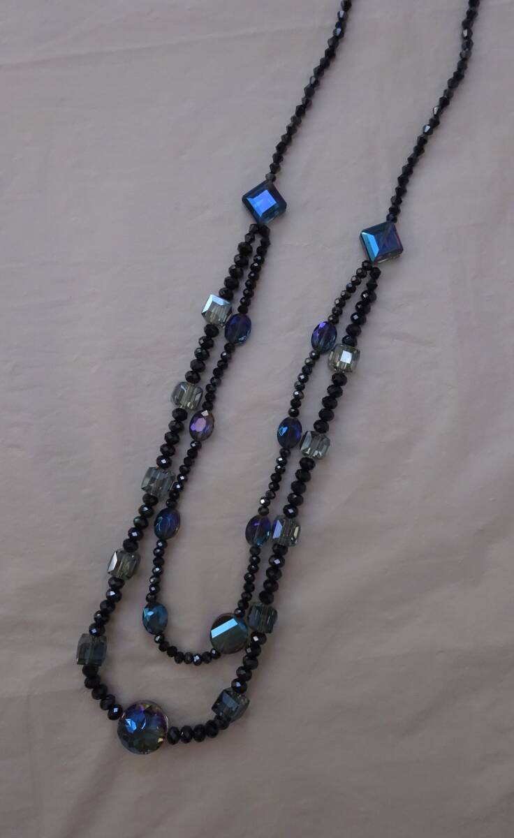 - ロングネックレス 2連 キラキラ ゴージャス クリア素材 ブルー系 ネイビー 衣装
