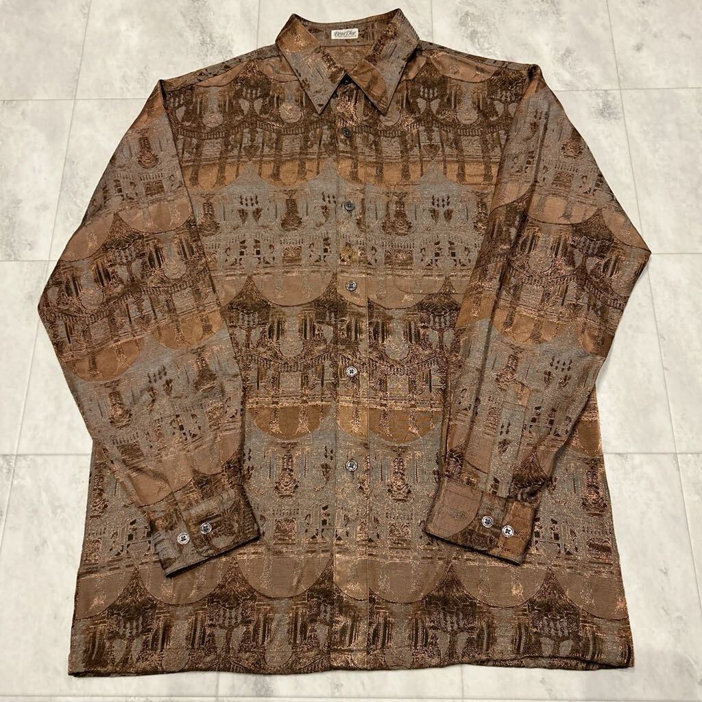 - Bras D'or 総柄 柄シャツ 刺繍 風景 レトロ アート ビンテージ 長袖シャツ ポリエステル50% レーヨン40% 毛10%