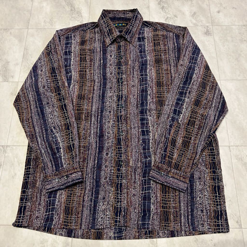 - ARTFISH 総柄 柄シャツ 幾何学 レトロ アート ビンテージ 長袖シャツ ポリエステル100%