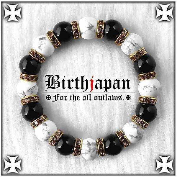 - 12mm/ロンデル×オニキス/ハウライト数珠ブレスレット/ヤクザ