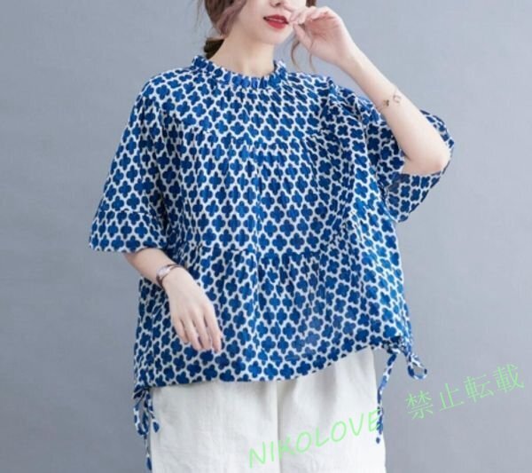 - 新品 カジュアル チュニック おしゃれ ブラウス プリント柄 大人可愛い 夏服 トップス 大きいサイズ 半袖 きれいめ ブラウスXL LG743
