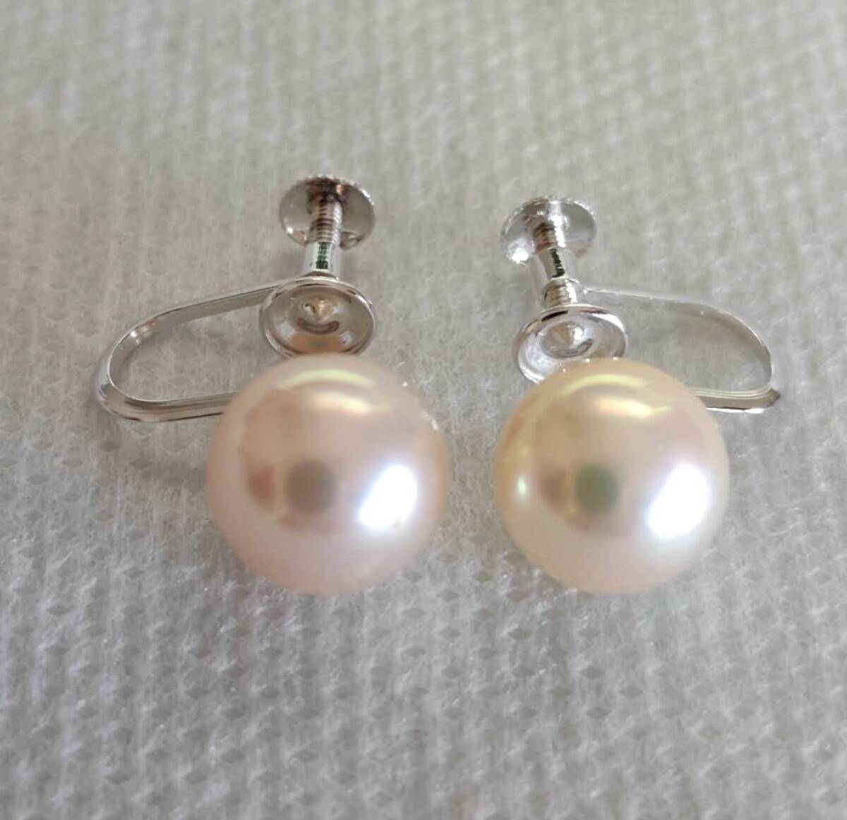 - 大きな真珠・ホワイトゴールドイヤリング・K14WG・真珠直径 9.0 mm