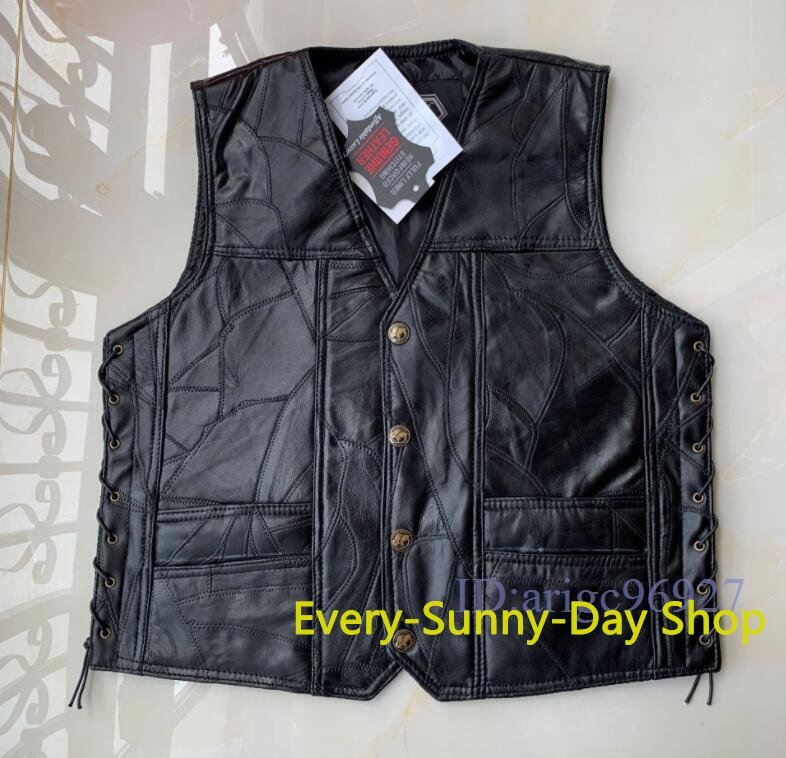 - 新品ベストメンズレザーベストバイクベストライダースベスト革ジャンカジュアルチョッキジャケットタンクトップ選択/L 黒色