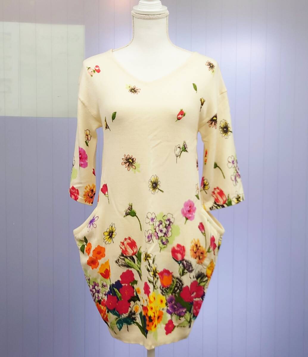 - MOSCHINO◆ニット ワンピース I38 Mサイズ 5分袖 チュニック ロング丈 モスキーノ 春 秋 冬
