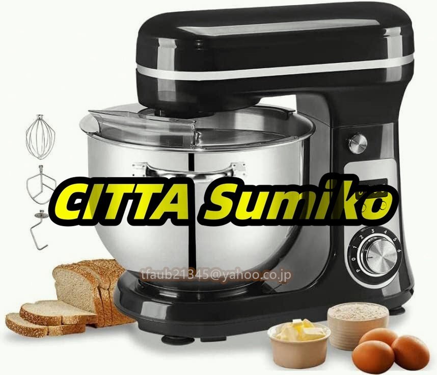 - スタンドミキサー 業務用ミキサー 6L大容量ボウル 7段階変速 15分タイマー機能 3種類アタッチメント付き 低騒音 混ぜる・泡立てる 多機能