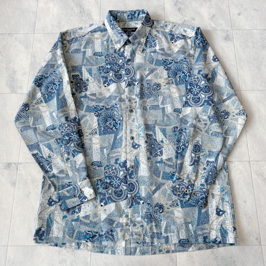 > Guy Laroche Paris 総柄 柄シャツ 花柄 レトロ アート ビンテージ 長袖シャツ ポリエステル100%