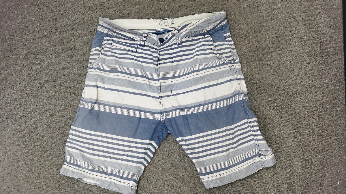 - 【イージーボーダーI コットンショーツ】古着 ヴィンテージ ショートパンツ インディゴ 短パン ビンテージ ワークパンツ ストライプ柄