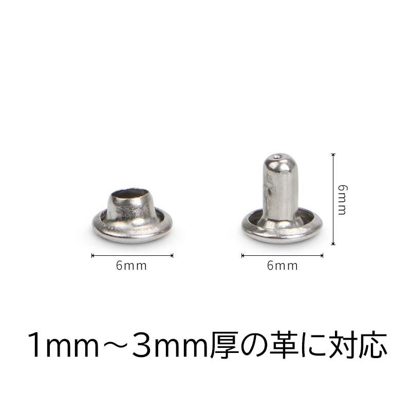 - レザークラフト 両面カシメ 100組セット (頭6mmx足6mm 色シルバー)