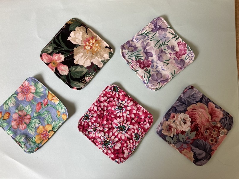 - 花柄コースター① 5枚セット 表裏花柄 ハンドメイド 大きさ縦横8.2㎝