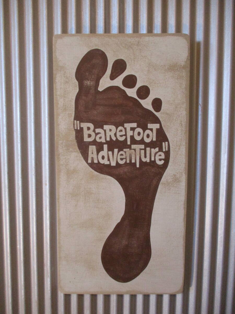 - インテリア木製看板 BAREFOOT ADVENTURE検)endlesssummerSURFMOVIEシャビーシックサーフィンSURFSHOPUSA70s