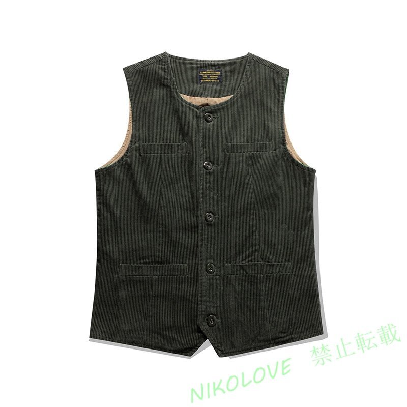 > 新品 19世紀スタイル アメカジ アンティークヴィンテージ復刻 品のある上質の生地感 コーデュロイ ベスト 秋冬 S~XXL 緑 LF782