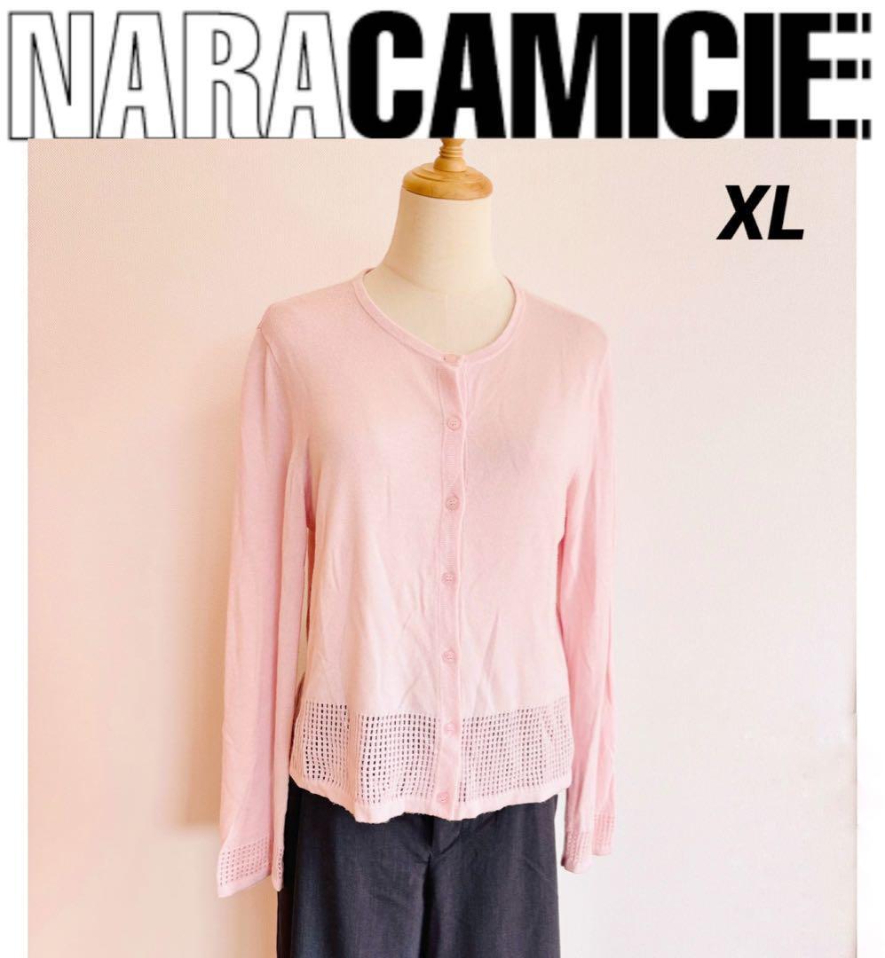 - NARACAMICIE ナラカミーチェ 裾アイレット ソフトタッチ カーディガン ピンク XL 冷房対策