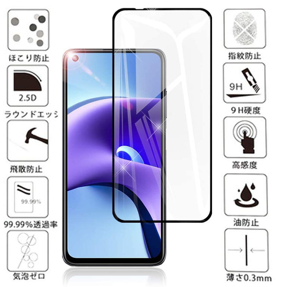 - 黒★送料無料 Xiaomi Redmi Note 9T 5G 用強化ガラスフィルム レッドミー ノート 保護 カバー フィルム シート シール 9H