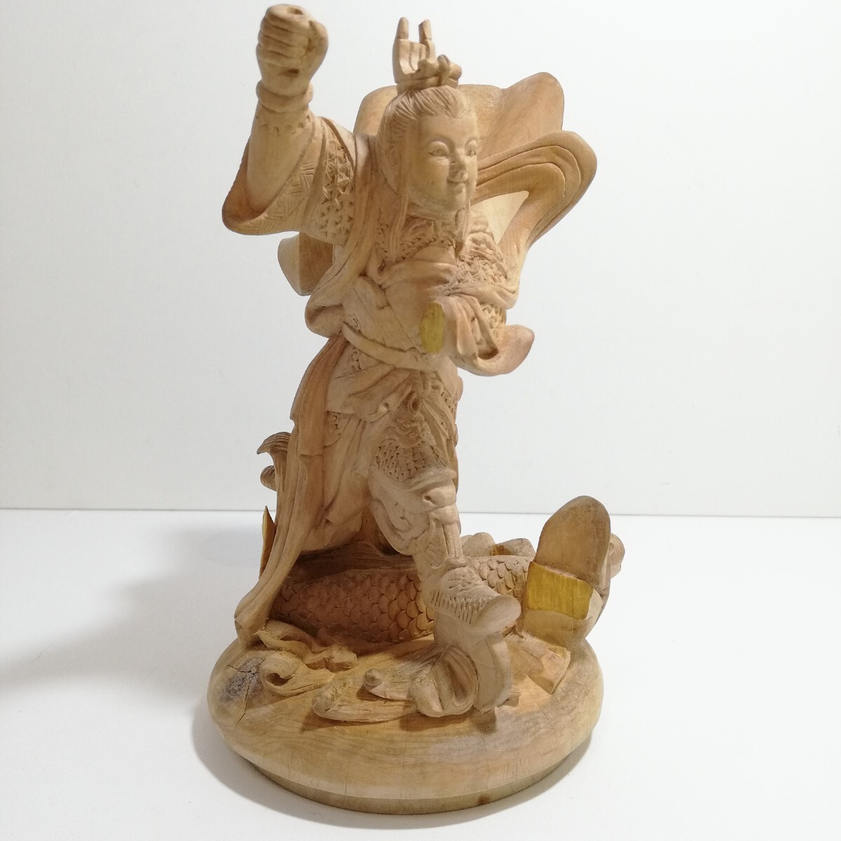 > 詳細不明 龍太子 細密彫刻 仏像 木彫像 置物 高さ19.4cm 重さ507g 破損あり ジャンク品 [中国美術 中華工芸品 台湾 彫刻 太子像 ]