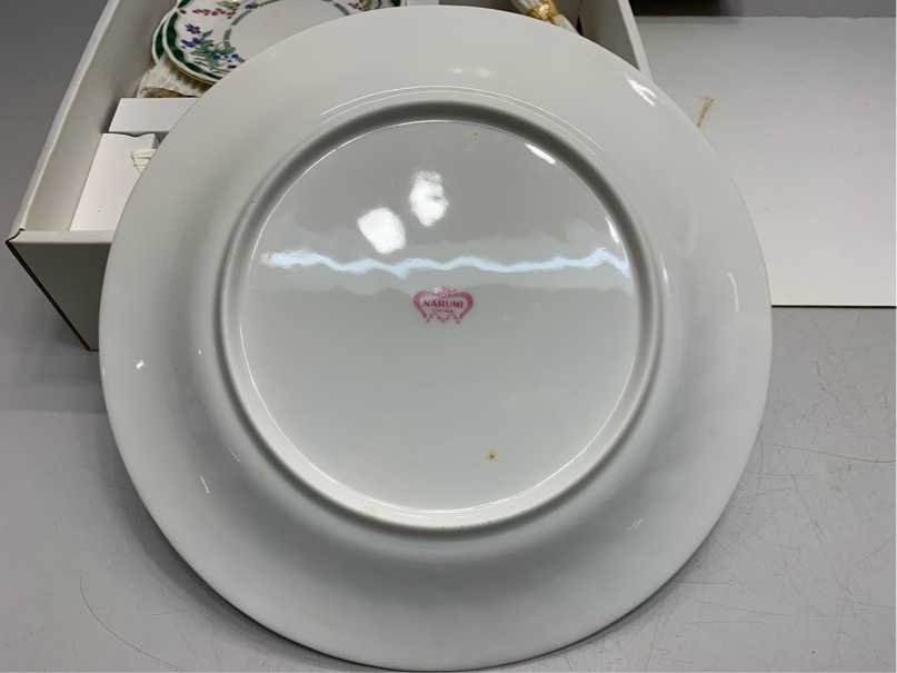 - 未使用 ナルミチャイナ デザートセット プレート 花がら 金彩 グリーン 7095 08