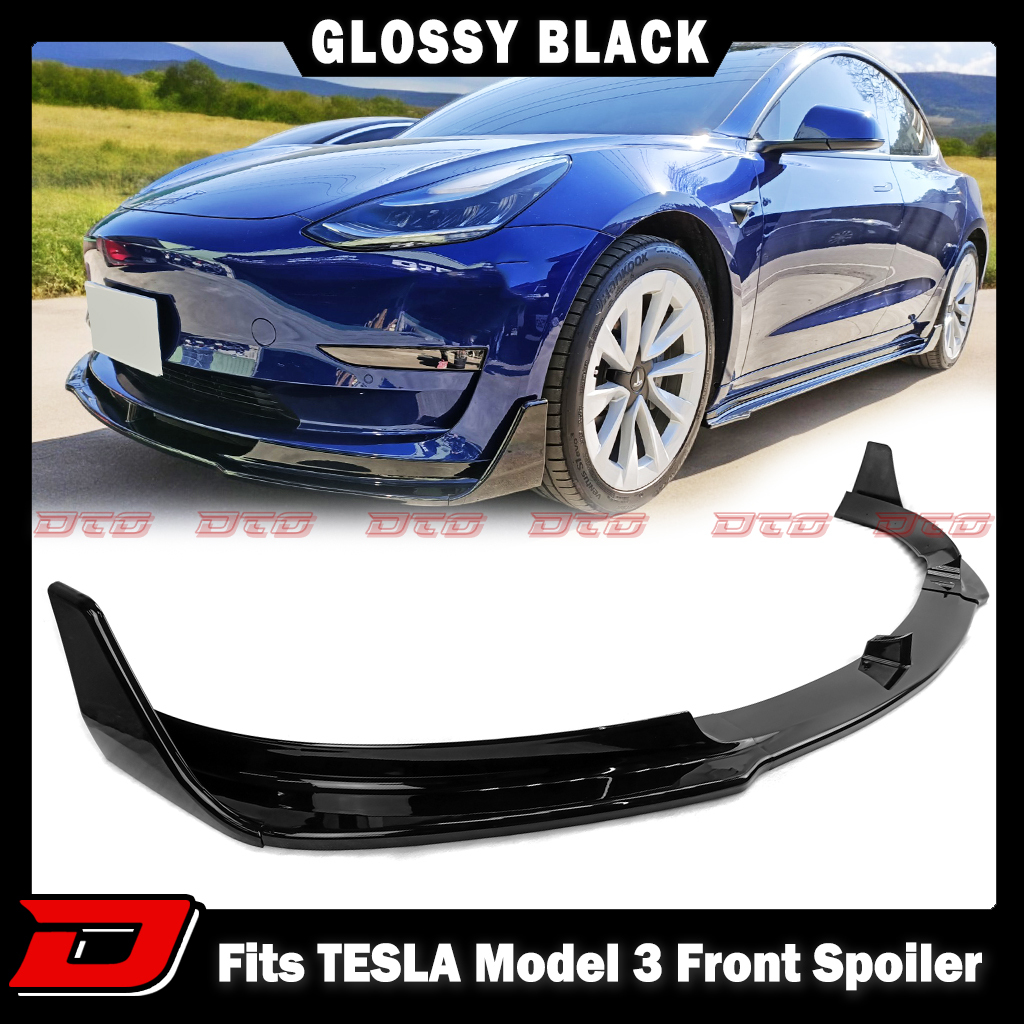 - 【即納品】#PBSB 艶有黒塗装済 Tesla Model3 テスラ モデル3 ABS エアロ バンパー フロントリップ フロントスポイラー 5PCS 塗装費込