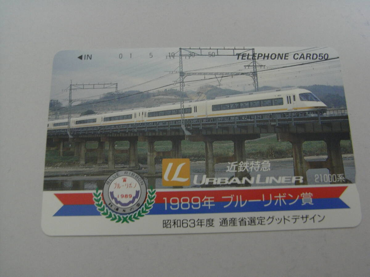 - 未使用テレホンカード50度数 近鉄特急 アーバンライナー 1989年ブルーリボン賞 昭和63年度通産省グッドデザイン