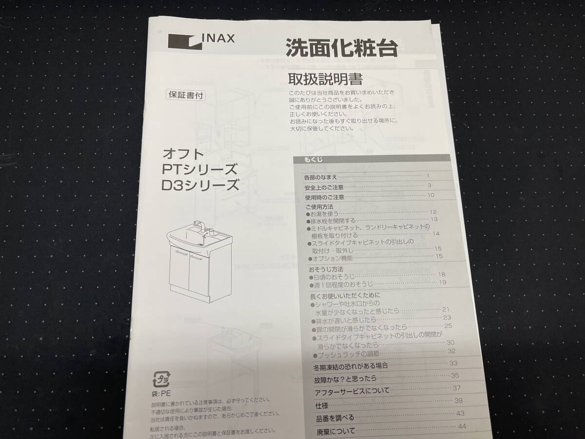 > INAX 洗面化粧台 取扱説明書 オフト PTシリーズ D3シリーズ