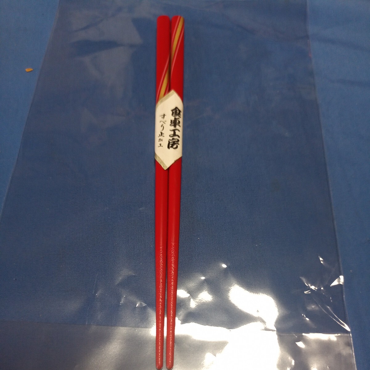 - 昭和レトロ■食卓工房 天然木 すべり止め加工 箸 赤