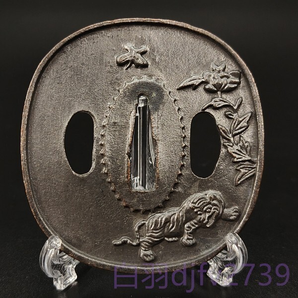 - SY179 日本刀装具 刀鍔 虎図 合金製 現代品 つば ツバ 刀剣美術 重さ約68G 厚さ約5mm