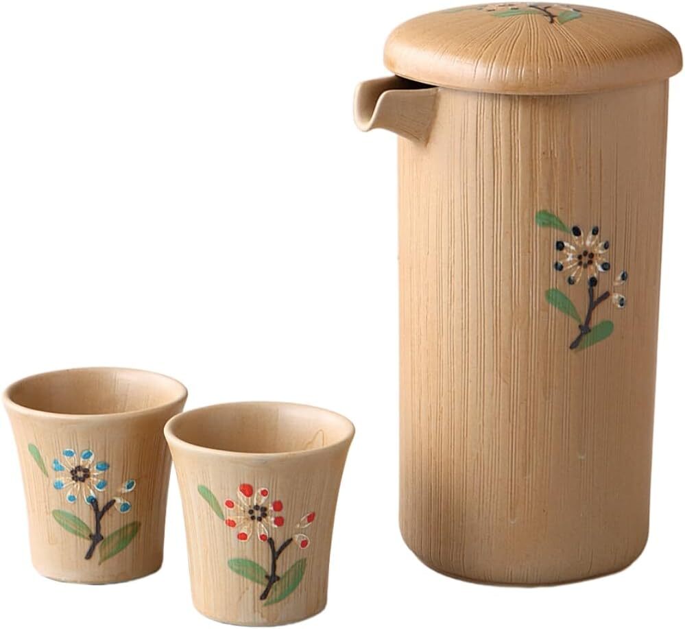 - 瀬戸焼! ☆手描青小花切立酒器セット☆ V4053-1 新品 ぐい呑 盃 杯 カズキ お猪口 徳利 片口 ギフト