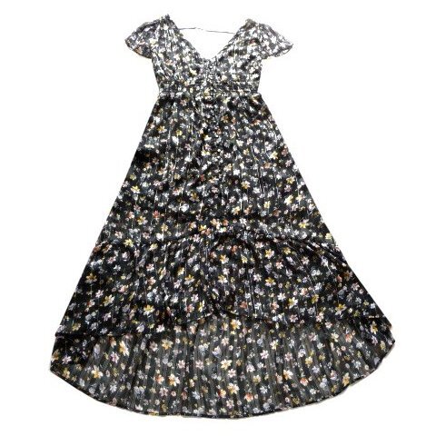- 新品 TALLY WEIJL 輸入 テールカット 黒 花柄 シフォン マキシ ワンピース USA ヴィンテージ ドレス