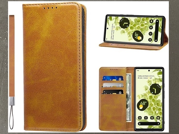 > WANDI QAQ Google Pixel 7 ケース 手帳型 フェイクレザー 新品 耐衝撃 スマホケース カードポケット スタンド機能 スプラット ブラウン