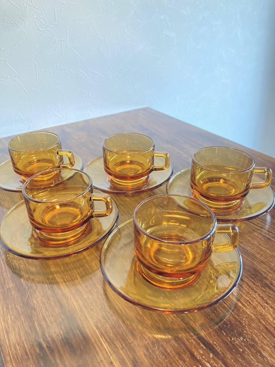 - コーヒーカップ&ソーサ― アンティーク ヴィンテージ レトロ アンバー 【5点セット】