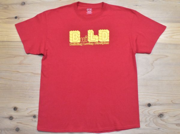 > USA古着 BUILD ブロック ロゴ Tシャツ sizeXL 赤 レッド レゴ 建築 ビッグシルエット 大きいサイズ アメリカ アメカジ Port and Company