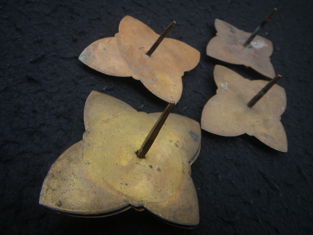 - 古い金具 四ヶ 全長:約85㎜ 古材 建築金物 建具金具 武家屋敷城社寺仏閣 日本製 銅製 立体 釘隠し