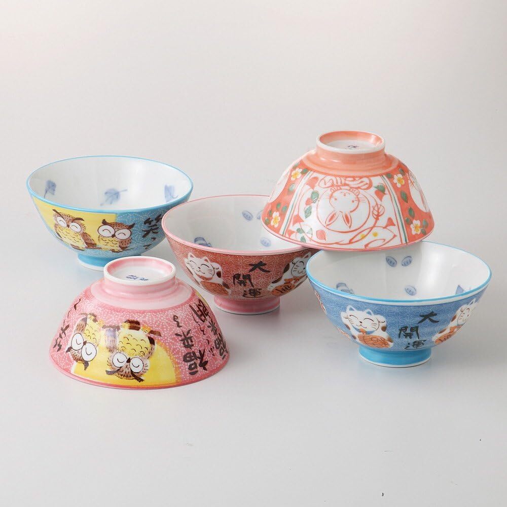 - 美濃焼! ☆縁起内外ご飯茶碗5客揃☆ V4075-2 新品 飯碗 ご飯茶碗 丼 どんぶり 碗 盛鉢 盛皿 鉢 プレート ギフト