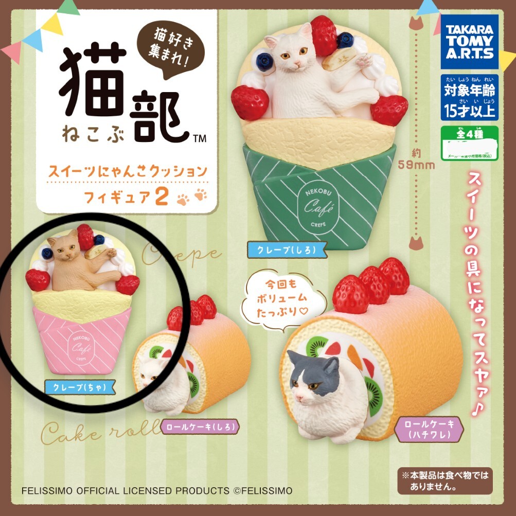 - 猫部 スイーツにゃんこクッション フィギュア2 クレープ ちゃ 茶 カプセルトイ ガチャ フィギュア 猫 ネコ トラネコ 新品