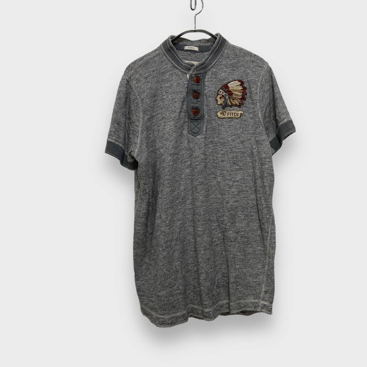 - 送料無料☆Abercrombie&fitch☆インディアンワッペン☆ヘンリーネックTシャツ☆XXL☆杢グレー☆F24M☆