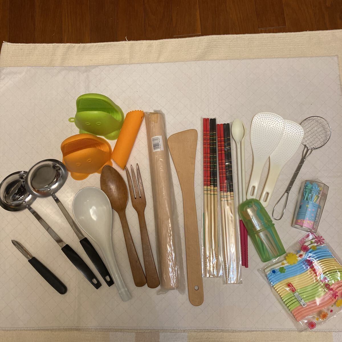 - キッチンツール 20点 ウェンガー おたま シリコンミトン ワニ 陶器大レンゲ 木製スプーンフォーク 綿棒 木ベラ 菜箸 しゃもじ フォーク