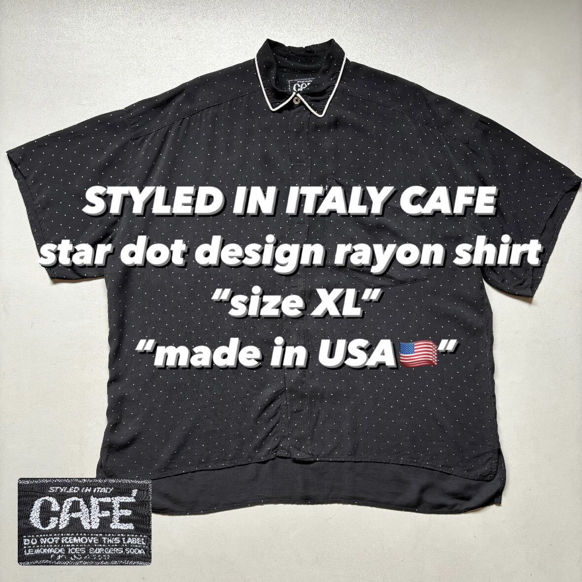 > STYLED IN ITALY CAFE star dot design rayon shirt size XL made in USA ドット柄シャツ 半袖シャツ レーヨンシャツ アメリカ製 USA製