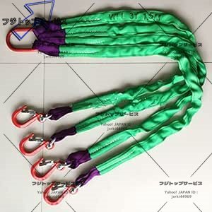 - 4点吊りスリングベルト 建築 土木用 ベルトスリング 玉掛け 合金鋼製フック付き リング付き ポリエステル製 1m 耐荷重3t