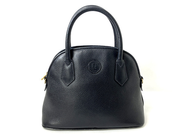 > 【★即決★】FENDI フェンディ ハンドバッグ FFロゴ レザー ネイビー ゴールド金具 オールドフェンディ ボリード型 アルマ型 ヴィンテージ