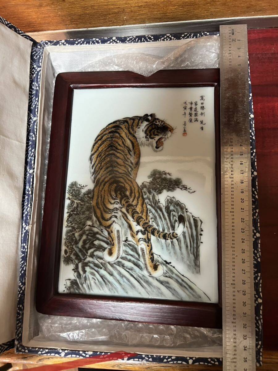 - 中国名瓷 景德鎮珍品 名家作品私人定制十二生寅虎陶板 額装 唐物