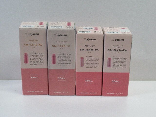 - ■ZOJIRUSHI SM-NA36-PA/SM-TA36-PA 象印マホービン 水筒 ステンレスマグ ボトル ピンク 360ml 4個セット 未使用品