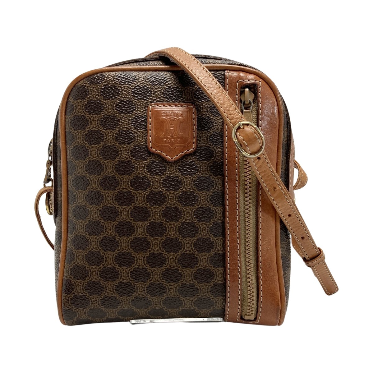 - ☆☆ CELINE セリーヌ マカダム柄 ショルダーバッグ M07 ブラウン PVC×レザー ヴィンテージ やや傷や汚れあり