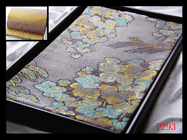 - P293厳選西陣 振袖可 波頭蔦紋 濃鼠色地 幽玄な煌めき 両面正絹純金糸六通高級美術袋帯 新品同様◇検◇簪着物名古屋帯帯締め