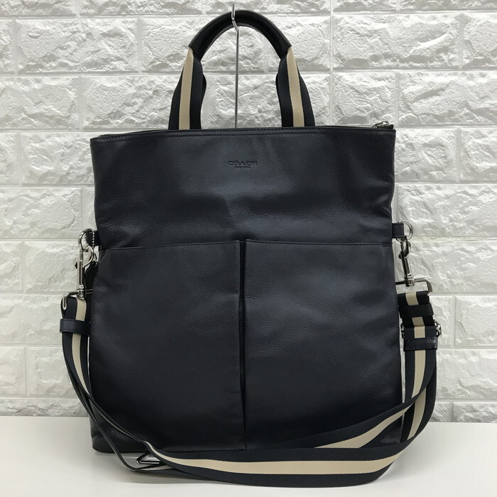 - COACH レザー 2WAYバッグ ネイビー F54759 [jgg]