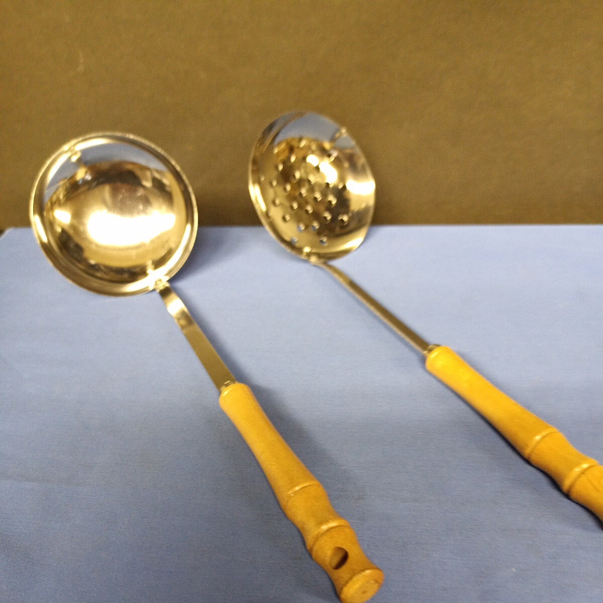 - 昭和レトロ■木柄 キッチンツール ステンレス製 お玉 穴あきお玉