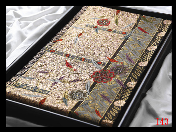 - I43厳選西陣 手織り 振袖可 枝垂れ桜紋 黒色地 六通正絹純金糸高級美術袋帯 ◇検簪着物名古屋帯帯締め