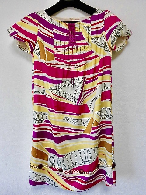 > ●BODYDRESSING/ ボディドレッシング/赤紫ゴールド総柄ワンピース/美ビジュウ飾り/サイズM~L相当