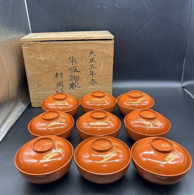 - 大正五年春 朱吸物椀 村岡什物 吸物椀 蒔絵 木製 漆器 漆芸 カ19